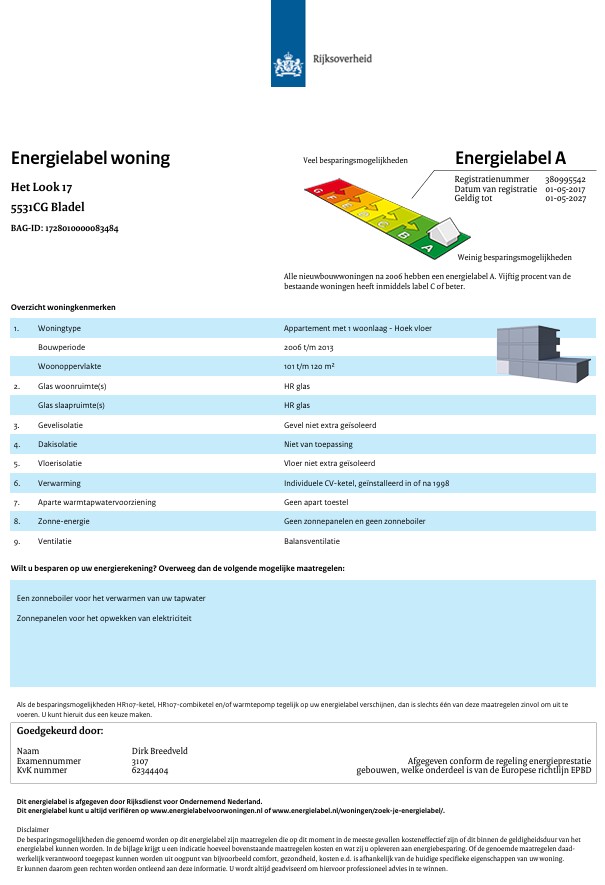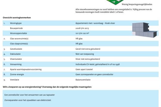 – het appartementencomplex is voorzien van dak-, spouwmuur- en vloerisolatie.