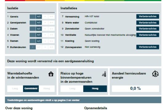 – het appartement is voorzien van dak- en spouwmuurisolatie.