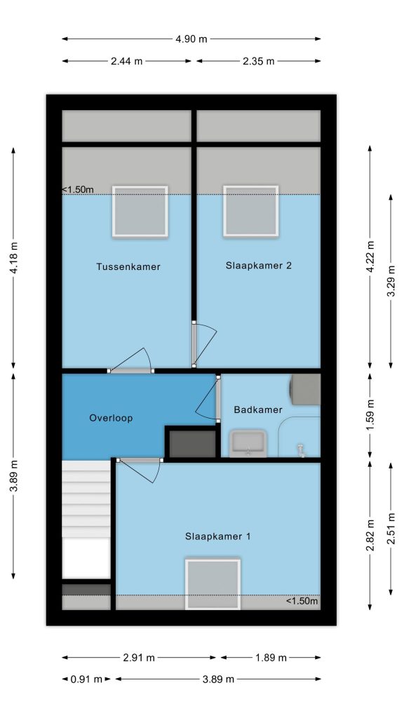 Overloop met vinylvloer en toegang tot de slaapkamers en badkamer.
