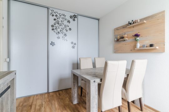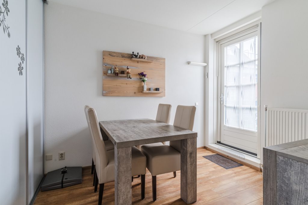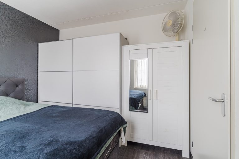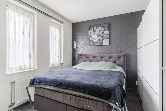 Het appartement beschikt over twee slaapkamers. De hoofdslaapkamer is netjes afgewerkt met een laminaatvloer, stucwerk- en behangwanden en een stucwerkplafond. De tweede slaapkamer wordt momenteel gebruikt als eetkamer en is voorzien van een laminaatvloer, gestucte wanden en -plafond en een praktische 3-deurs kastenwand. Vanuit deze kamer stap je zo het royale dakterras van maar liefst 14 m² op, waar je in alle rust kunt genieten van het buitenleven.