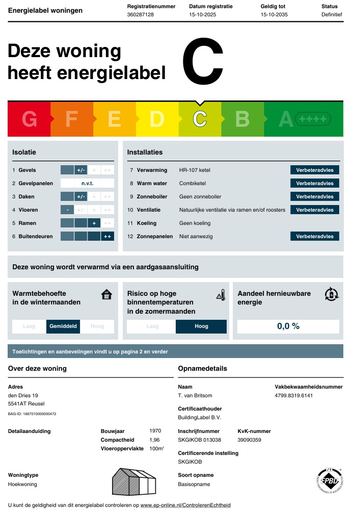 – de woning is voorzien van dak- en spouwmuurisolatie. Daarnaast is de tuinkamer voorzien van dakisolatie.