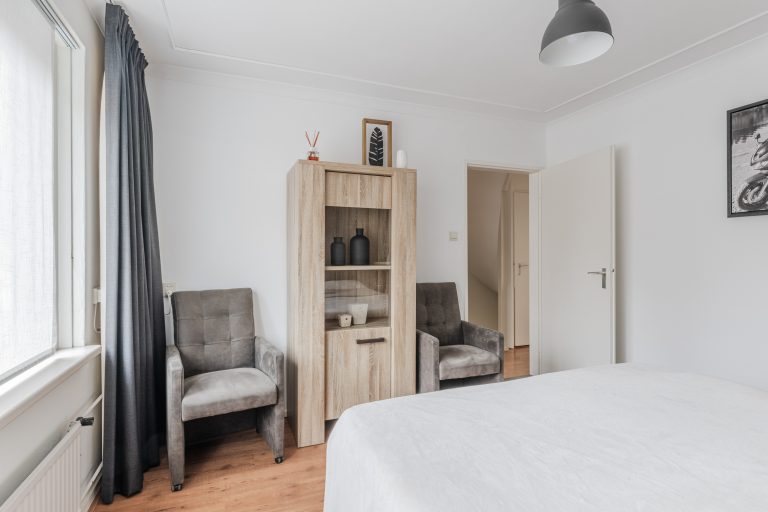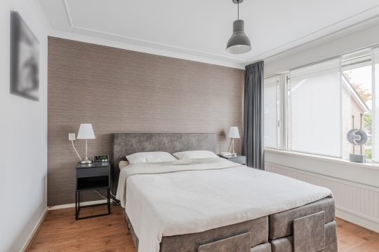 De ouderslaapkamer (slaapkamer 1) is gelegen aan de achterzijde en is voorzien van een laminaatvloer, stucwerk- en behangwanden, stucwerkplafond met sierlijst en een elektrisch bedienbaar screen. Aan de voorzijde ligt slaapkamer 2 met een laminaatvloer, stucwerkwanden, stucwerkplafond en een elektrisch bedienbaar rolluik. Slaapkamer 3 vind je aan de achterzijde en heeft een laminaatvloer, stucwerkwanden, stucwerkplafond en een handige inbouwkast.