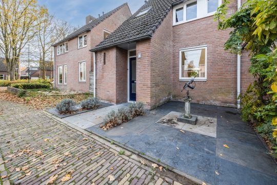 De woning beschikt over een nette, onderhoudsvriendelijke voortuin met sierbestrating en beplanting.
