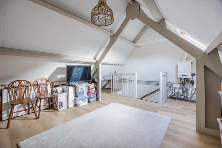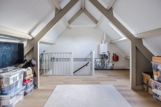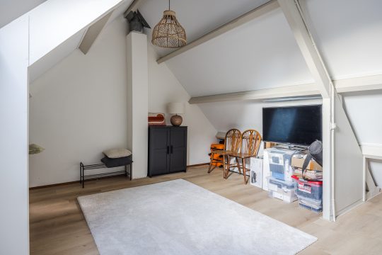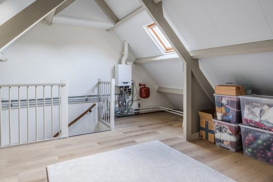 Via de vaste trap bereik je de royale, volledig vernieuwde zolderverdieping met PVC-vloer, groot Velux dakvenster en de opstelling van de cv-installatie. Deze grote open ruimte biedt fantastische mogelijkheden: creëer hier eenvoudig een vierde slaapkamer, werkkamer, hobbyruimte of studio.