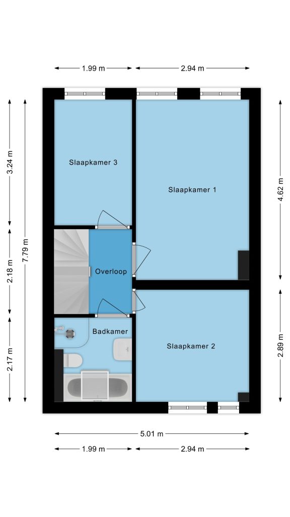 Eerste verdieping – luxe badkamer en drie ruime slaapkamers