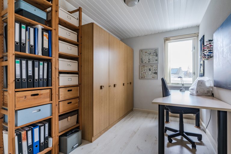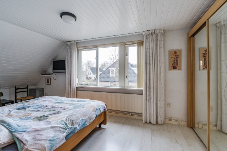 De eerste verdieping beschikt over drie ruime slaapkamers. Alle kamers zijn afgewerkt met een laminaatvloer en voorzien van rolluiken. De indeling is praktisch en geschikt voor uiteenlopende woonwensen, zoals slapen, werken of hobby.
