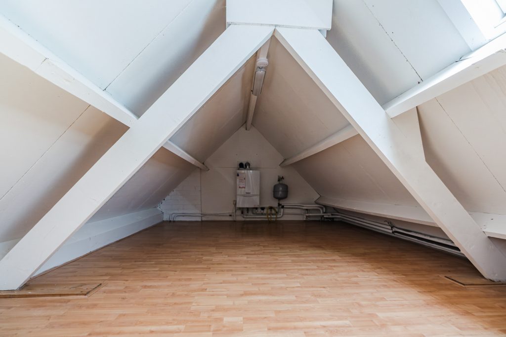 Via een vlizotrap bereik je de bergzolder. Deze ruimte is ideaal voor opslag en herbergt de CV installatie van Vaillant uit 2007.