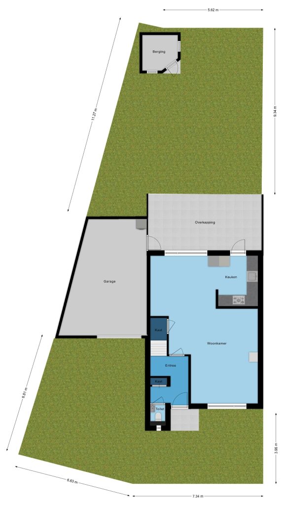 – royale eigen oprit met geïsoleerde garage van 27 m²