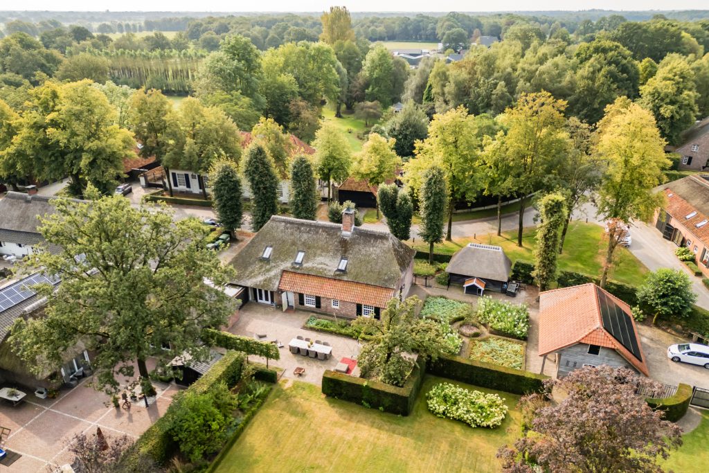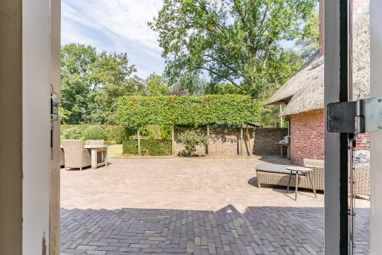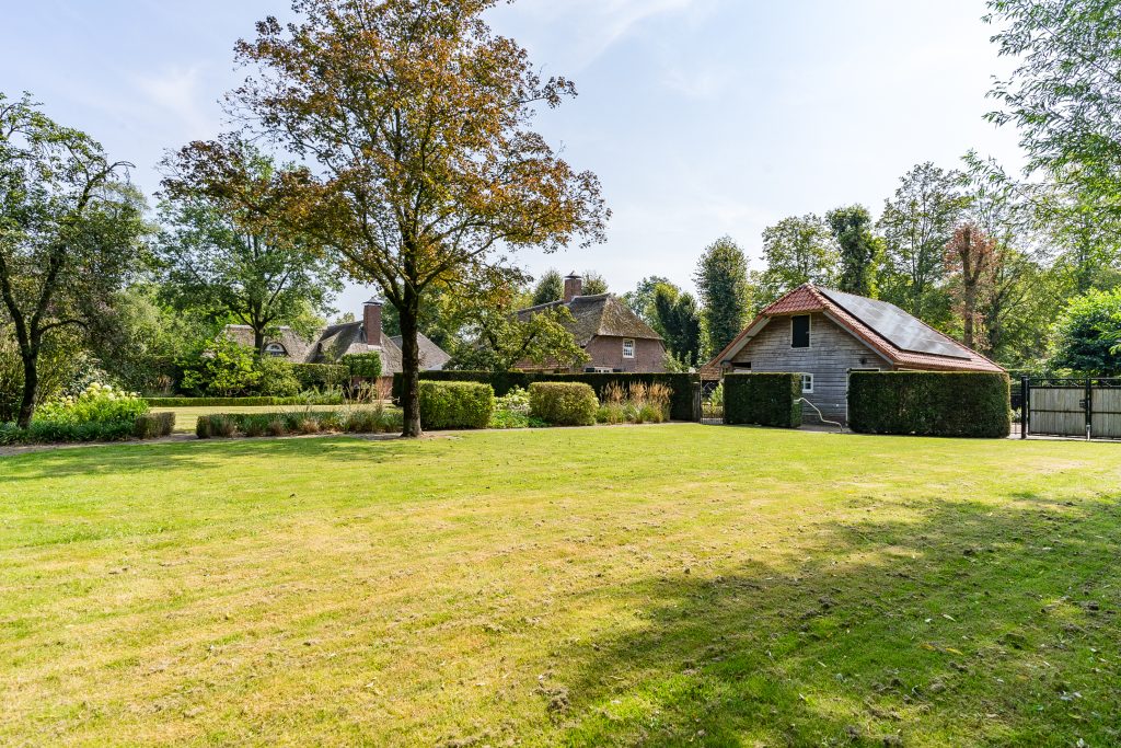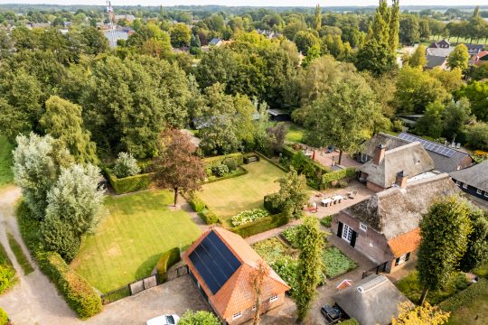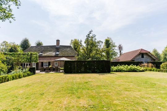 Op een werkelijk prachtige locatie, aan een sfeervolle straat omzoomd door volwassen bomen en karakteristieke historische bebouwing, staat deze uitzonderlijk fraaie en charmante rietgedekte woonboerderij. Een object dat historie, karakter en hedendaags wooncomfort op unieke wijze samenbrengt. De boerderij dateert oorspronkelijk uit circa 1830 en is vanaf 2007 met veel zorg, aandacht en gevoel voor authenticiteit grondig gerenoveerd en gemoderniseerd. Daarbij zijn tal van originele elementen behouden en gecombineerd met luxe en comfort van nu.
