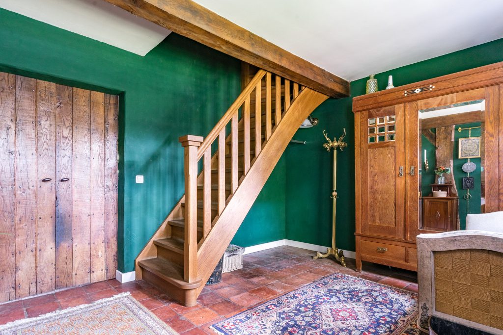 U betreedt de woning via een ruime en uitnodigende entreehal, voorzien van een prachtige plavuizenvloer met originele, authentieke estrikken en een hardhouten trapopgang naar de eerste verdieping. Vanuit deze hal heeft u toegang tot beide woonkamers en de leefkeuken.