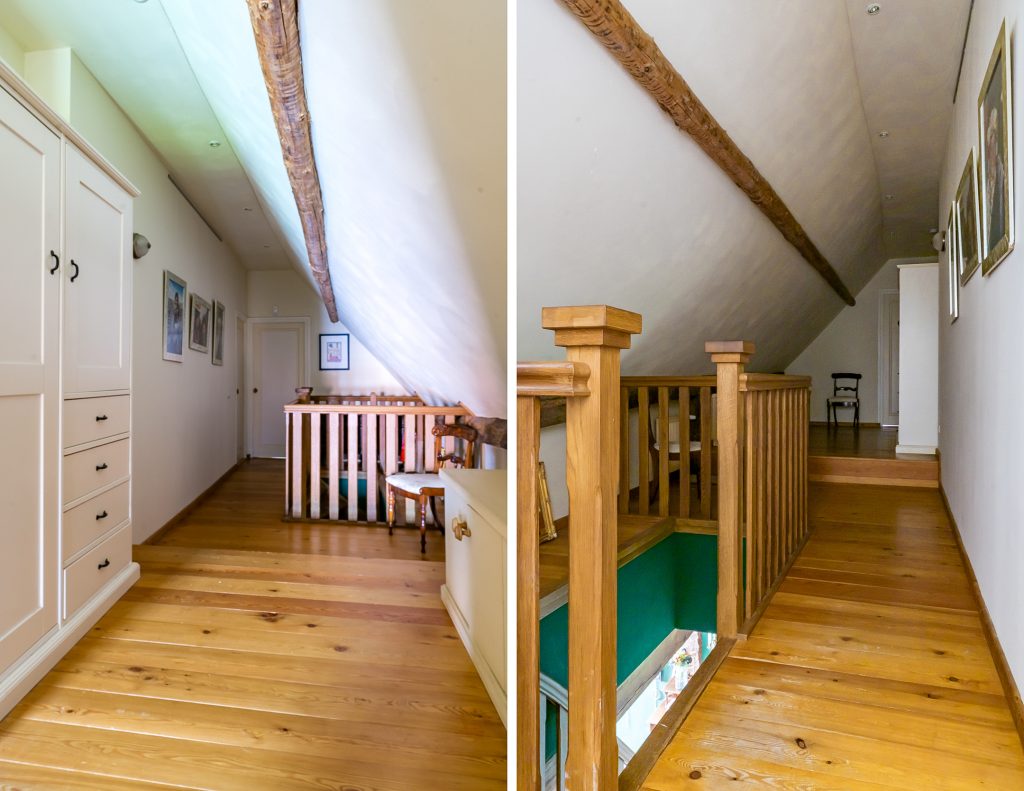 Via de hardhouten trap bereikt u de riante overloop met grenenhouten plankenvloer en ingebouwde kastruimte. Vanaf hier heeft u toegang tot drie zeer royale slaapkamers en de tweede badkamer.