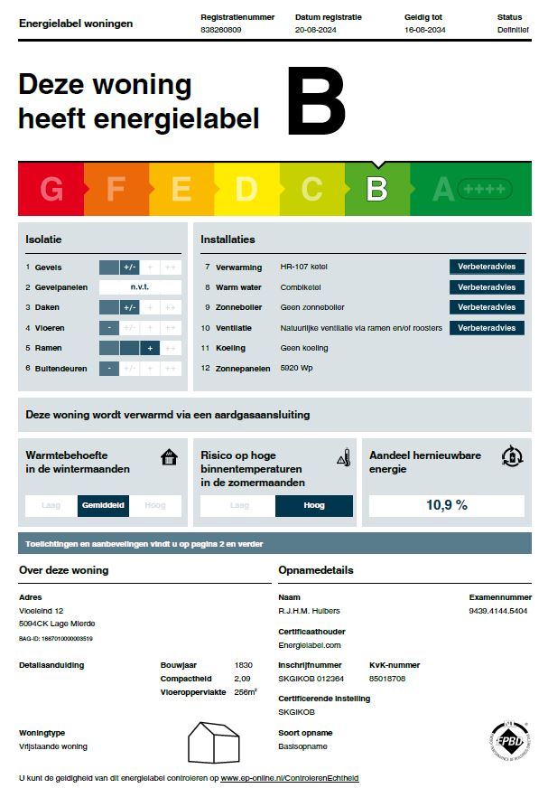 – de woning is voorzien van 16 zonnepanelen (370 Wp per stuk, geinstalleerd in 2022).