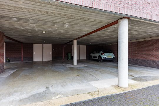 Op het achterterrein heeft het appartement de beschikking over een eigen parkeerplaats onder de carport, met aansluitend een praktische fietsenberging.