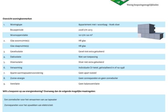 – het appartement is voorzien van vloer- en spouwmuurisolatie.