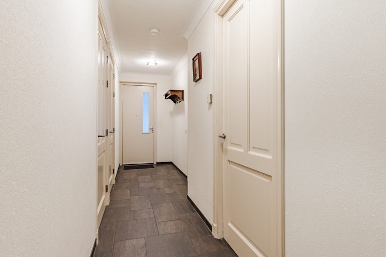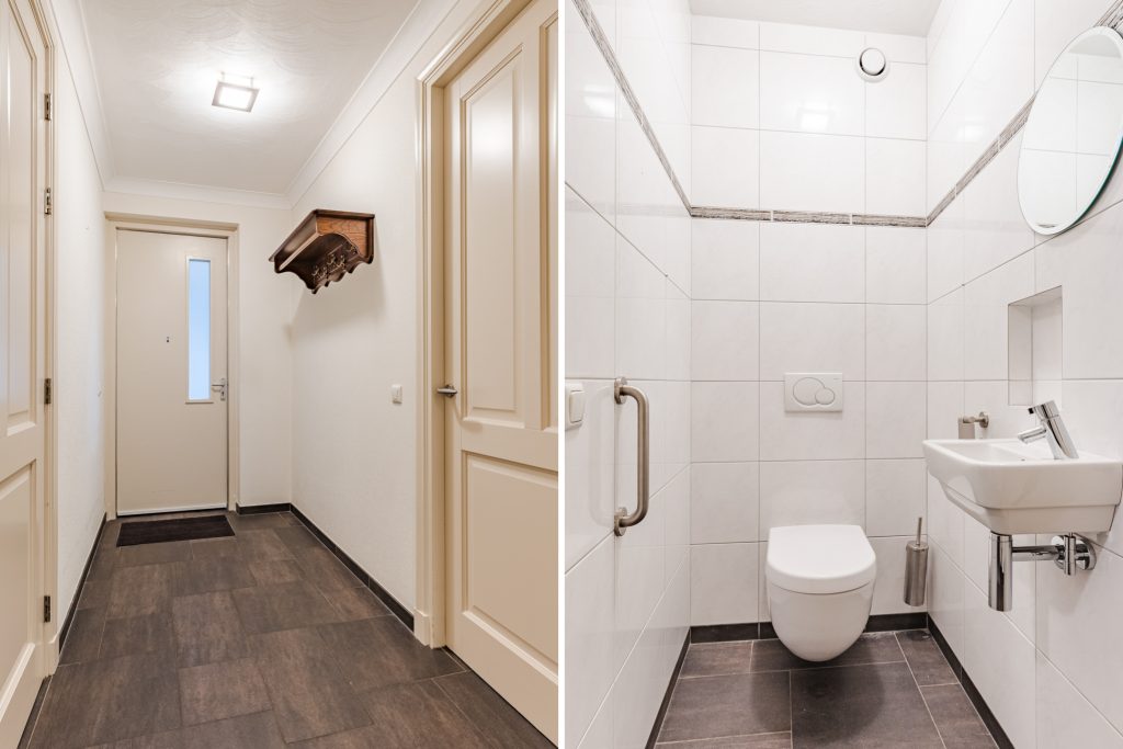 Bij binnenkomst in het appartement komt u in een ruime hal met een moderne tegelvloer. Vanuit hier zijn alle vertrekken bereikbaar. De volledig betegelde toiletruimte is netjes afgewerkt en voorzien van een wandcloset en een fonteintje.