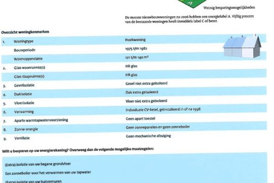 – het woonhuis is voorzien van dakisolatie.