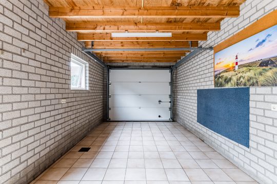Achter op het perceel bevindt zich een riante, vrijstaande garage, in spouwmuren gemetseld, voorzien van elektra en een segmentdeur. Ideaal voor auto, hobby of extra opslag.