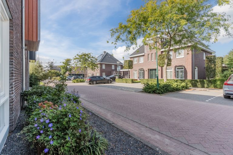 Aan de voorzijde bevindt zich de eigen oprit. De hoekligging zorgt voor extra privacy en een ruim gevoel rondom de woning.