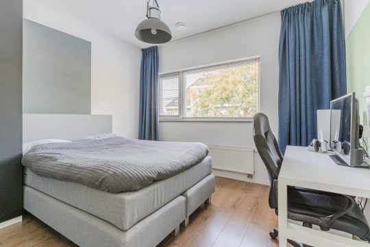 Op de eerste verdieping bevinden zich drie ruime slaapkamers, elk met een prettige lichtinval en een nette afwerking. De vloeren zijn voorzien van modern laminaat en de muren en plafonds zijn strak afgewerkt – je kunt er zo in! Twee slaapkamers liggen aan de voorzijde en één ligt er aan de achterkant. Alle kamers zijn voorzien van hardhouten draai-kiep kozijnen met vliegenhorren.
