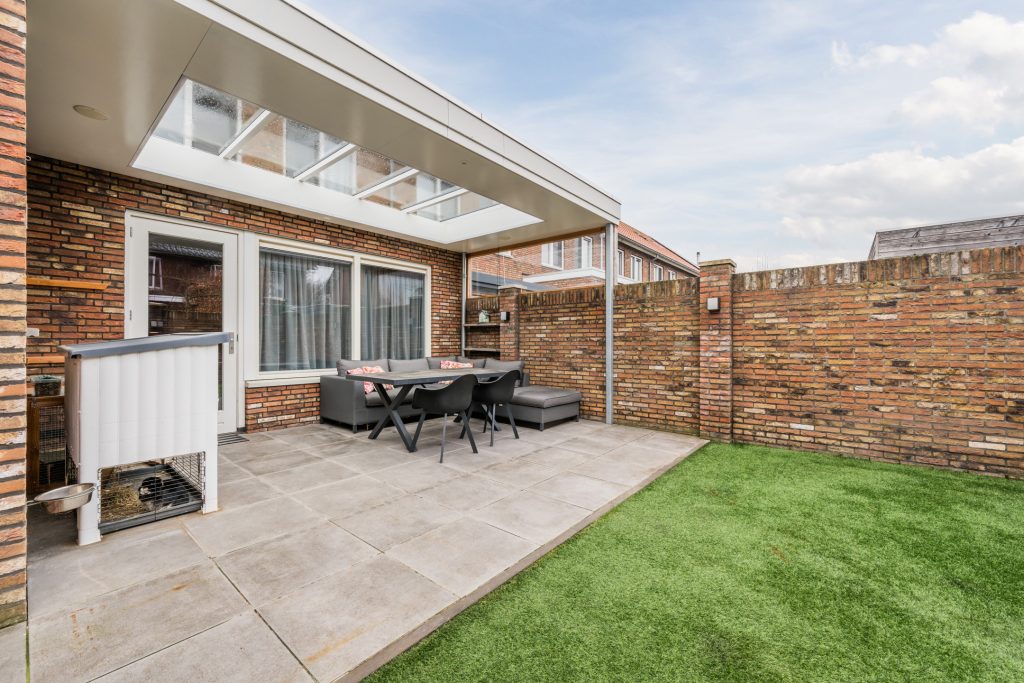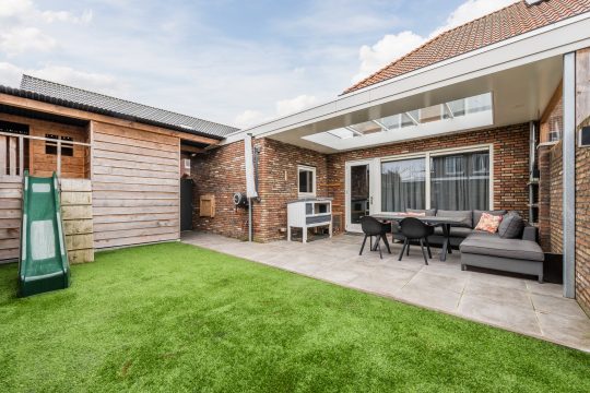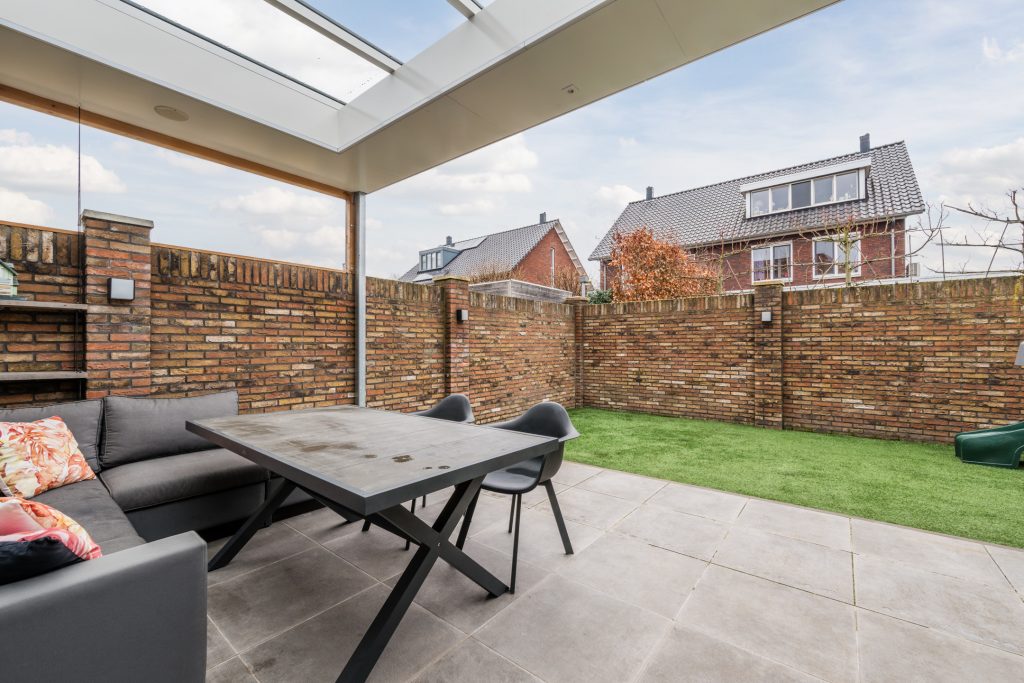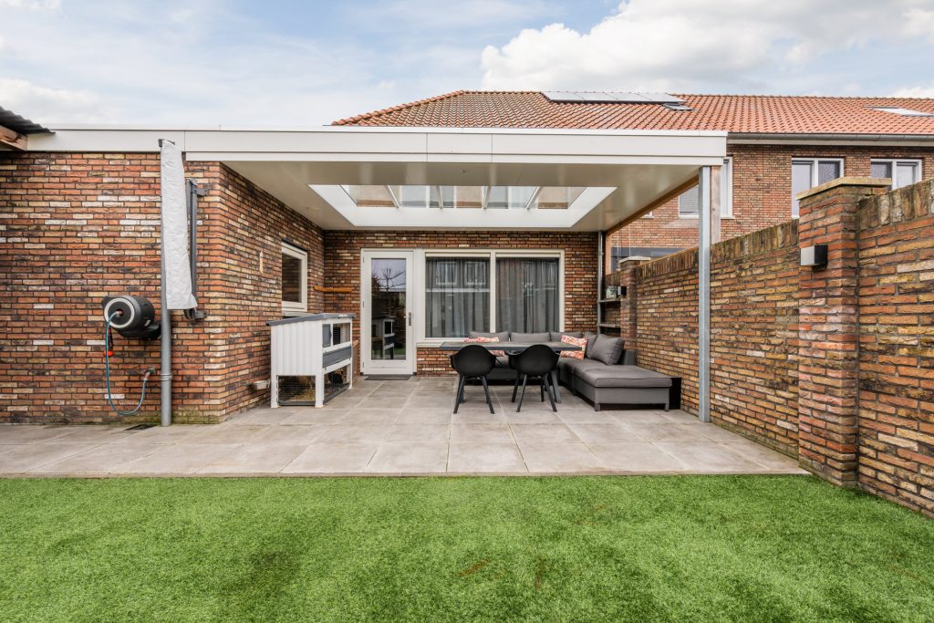 – Onderhoudsvriendelijke achtertuin met sfeervolle overkapping