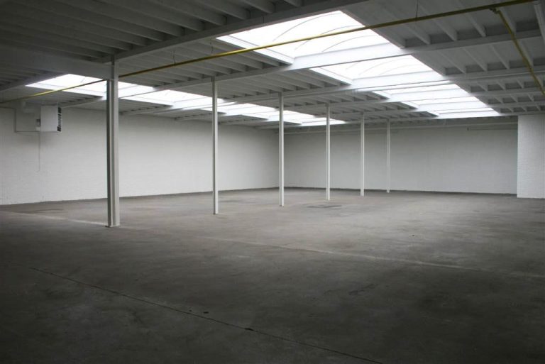 Totale oppervlakte bedraagt ± 280 m². Voorportaal met betonvloer en roldeur. Werkplaats met betonvloer, wanden schoonmetselwerk en 2 geïsoleerde lichtstraten. Vrije hoogte circa 4 meter.