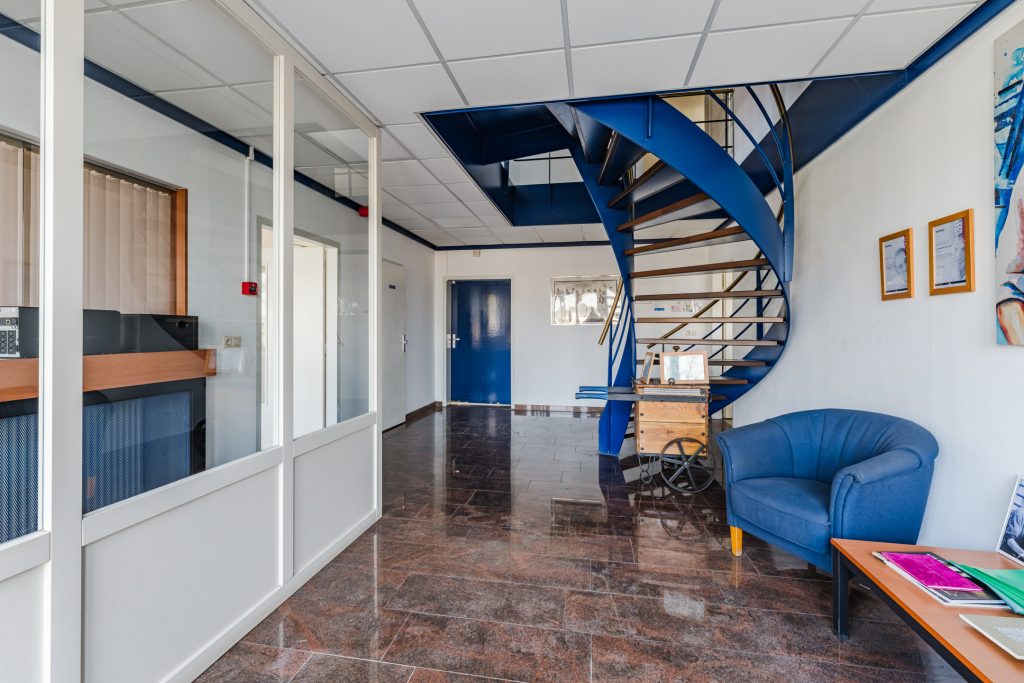 • entree met elektrische deur en stalen draaitrap naar eerste verdieping