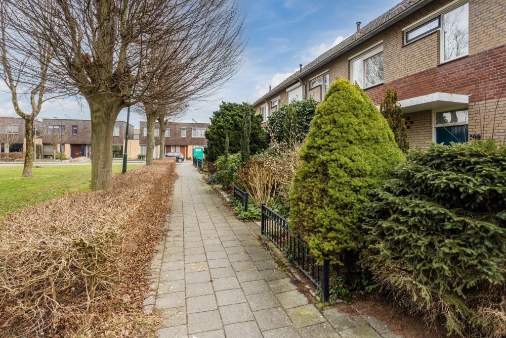 Aan de voorzijde beschikt de woning over een keurige voortuin met diverse beplanting en toegang tot de overdekte entree.