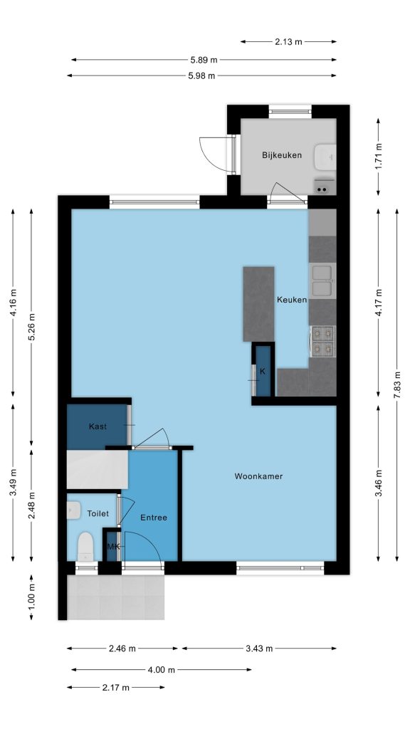 – gebouwgebonden buitenruimte 2 m².