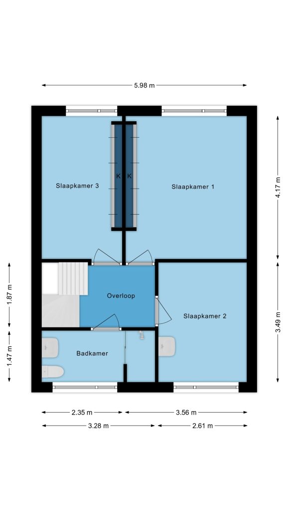 Alle slaapkamers zijn royaal van formaat en afgewerkt met vloerbedekking, behangwanden en stucwerkplafonds. Twee van de drie slaapkamers beschikken over een ingebouwde kastenwand, wat zorgt voor extra gemak en opbergruimte.