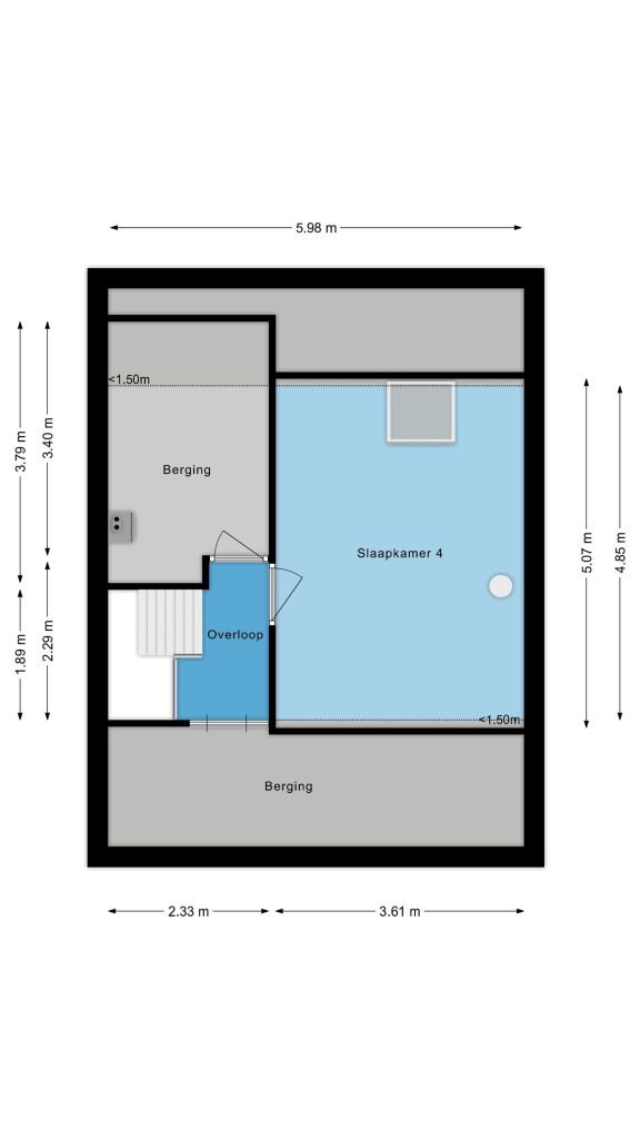 Hier bevindt zich ook de royale vierde slaapkamer, voorzien van vloerbedekking en een Velux dakvenster dat zorgt voor prettig daglicht. Ideaal als extra slaapkamer, werkruimte of hobbykamer.