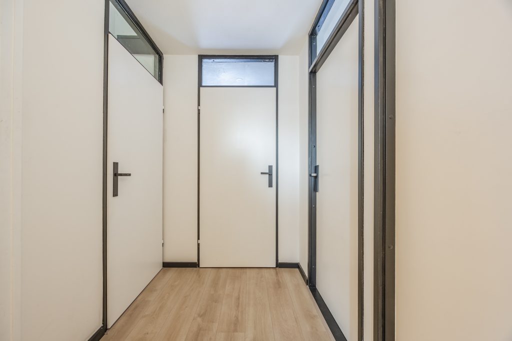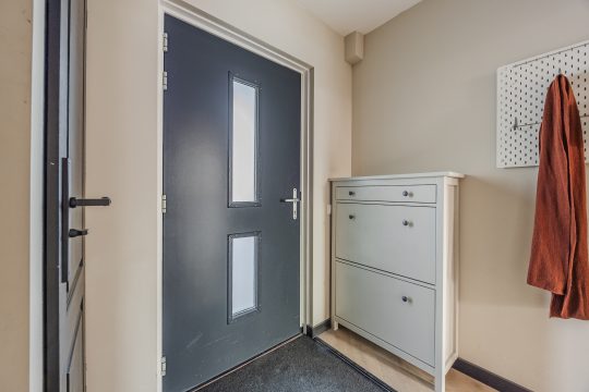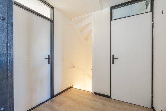 Via de fraaie entree betreed je de woning. De hal is direct een visitekaartje met een prachtige PVC-vloer in visgraatmotief, strakke wand- en plafondafwerking en een volledig betegelde, moderne toiletruimte met wandcloset en fonteintje. De vernieuwde en uitgebreide meterkast en de trapopgang naar de eerste verdieping maken de hal compleet.