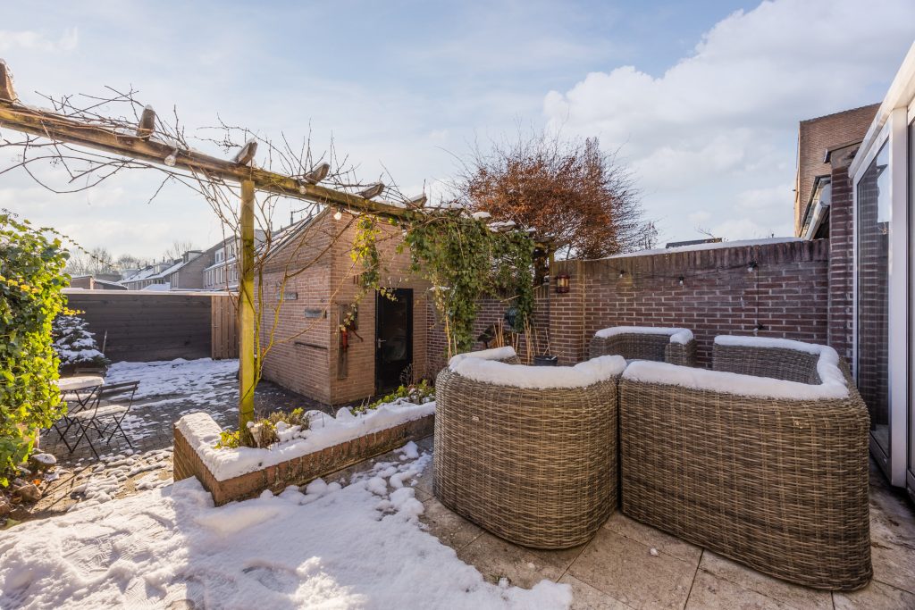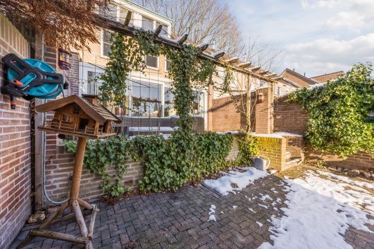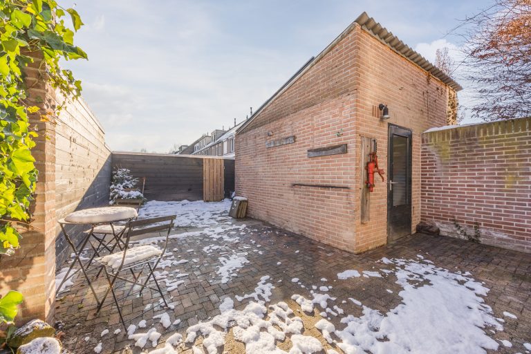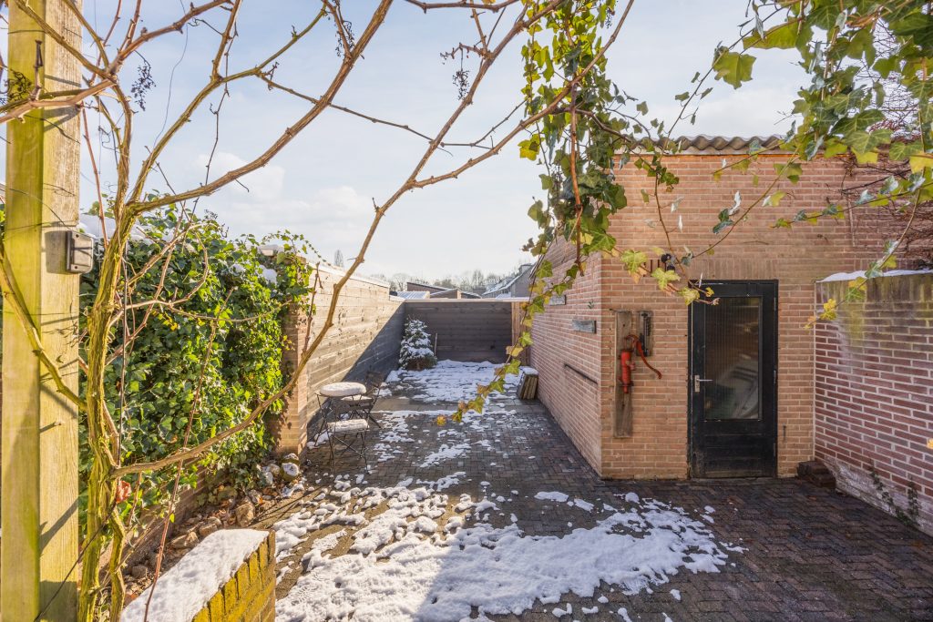 De achtertuin is een absoluut pluspunt: privacy biedend, gelegen op het zonnige zuiden en fraai aangelegd met sierbestrating. Hier geniet je de hele dag van de zon in alle rust. In de tuin staat een gemetselde berging met elektra, ideaal voor fietsen en opslag, en er is een achterom met poort aanwezig.