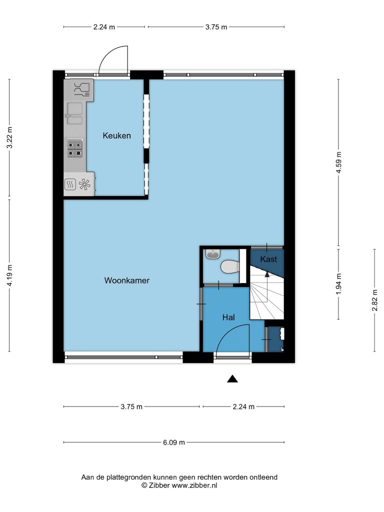 Entreehal met gietvloer, halfhoog betegelde toiletruimte met wandcloset en fonteintje, vernieuwde meterkast (5 groepen en 2 aardlekschakelaars), toegang tot de woonkamer en trapopgang naar de 1e verdieping.