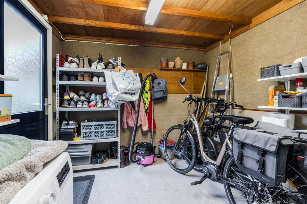 Inpandige berging met wasmachine-aansluiting en deur met toegang tot de oprit.