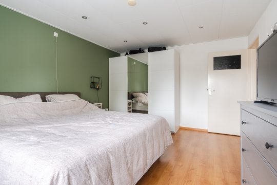 Drie royale slaapkamers voorzien van een laminaatvloer, stucwerkwanden en een lichte plafondafwerking.