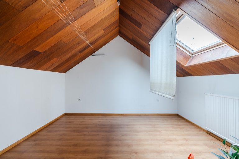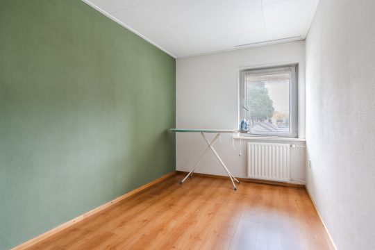 Riante 4e slaapkamer met een laminaatvloer en Velux dakvenster.