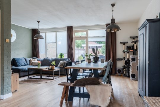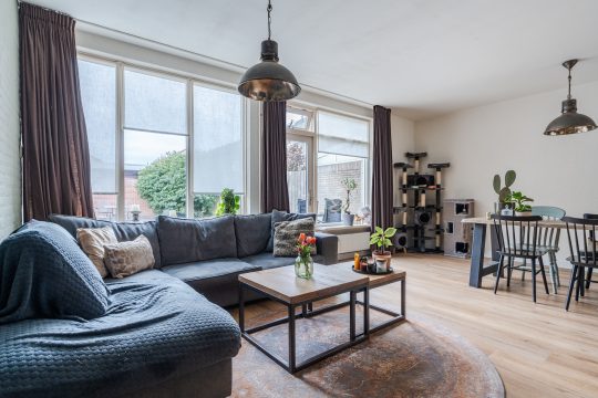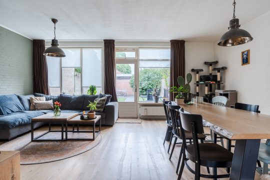 – de woning is voorzien van houten kozijnen met HR++ beglazing op de begane grond en kunststof kozijnen met dubbel glas op de 1e verdieping.