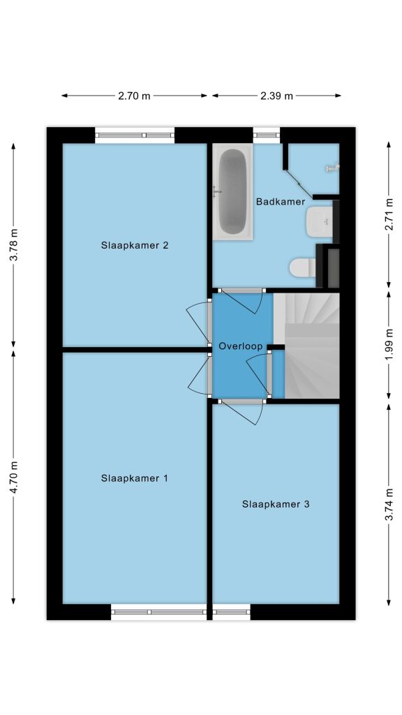 De eerste verdieping beschikt over drie ruime slaapkamers, alle voorzien van een laminaatvloer. De master bedroom aan de voorzijde is uitgerust met een Daikin airco (2025) en een vliegenhor, ideaal voor warme zomernachten. De slaapkamer aan de achterzijde is voorzien van een rolluik, perfect voor wie graag in het donker slaapt. De derde slaapkamer is eveneens ruim en flexibel in te delen, bijvoorbeeld als kinderkamer of werkkamer.