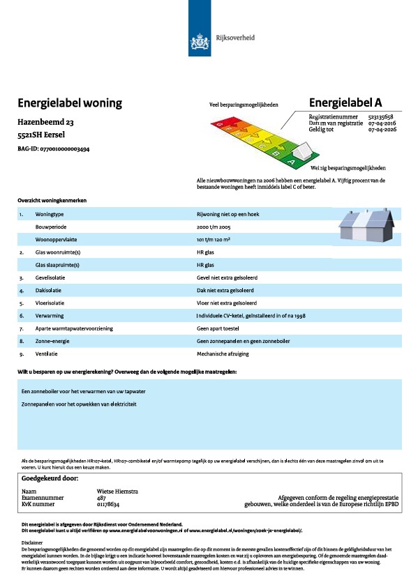 – de woning is voorzien van dak-, spouwmuur- en vloerisolatie.