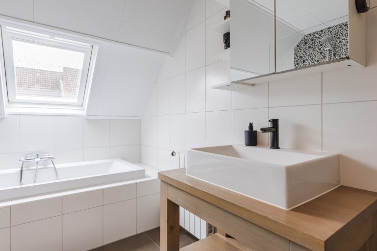 De grote vierde slaapkamer is een volwaardige en sfeervolle ruimte, voorzien van vinylvloer, een handig wastafelmeubel en maar liefst twee Velux dakvensters die zorgen voor een fijne lichtinval. Ideaal als logeerkamer, thuiskantoor of tienerkamer!