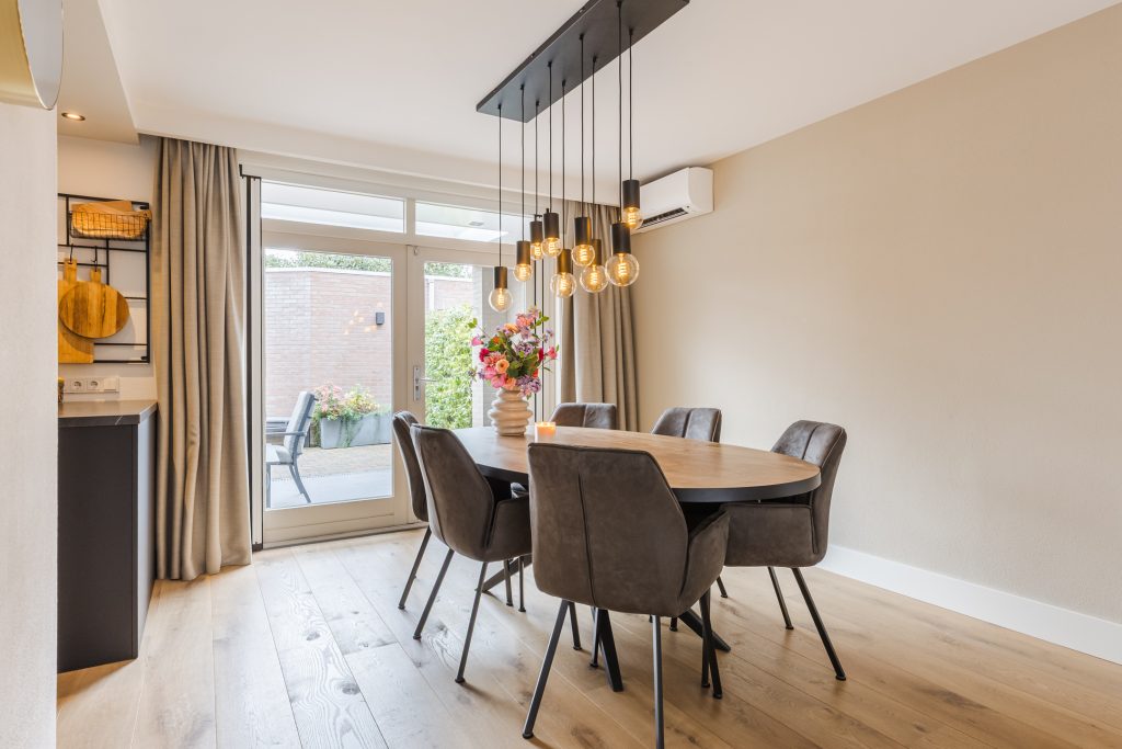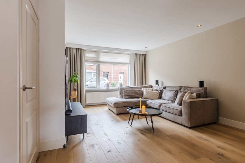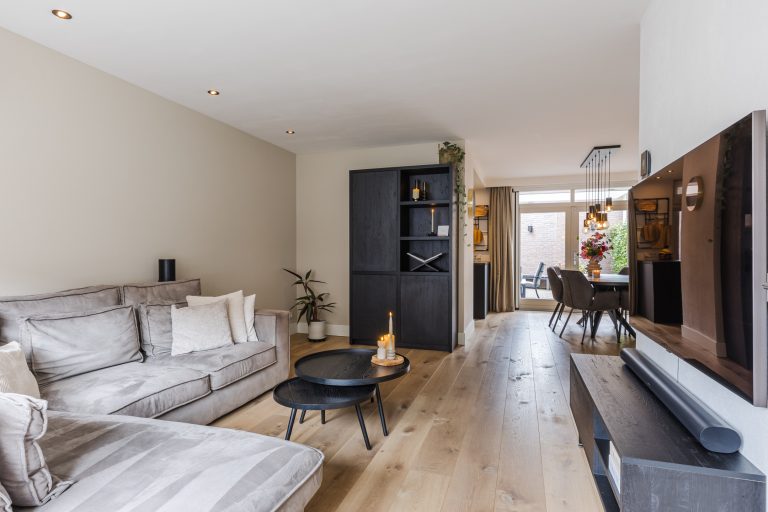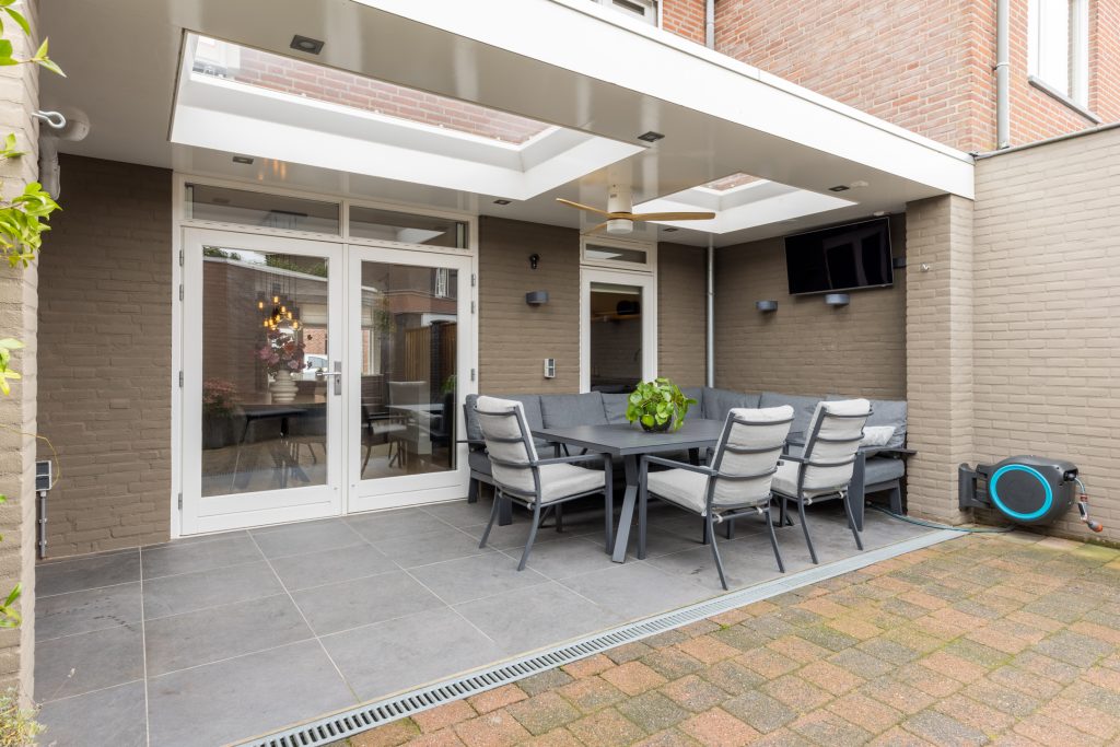 Met de airconditioning (verwarmen en koelen) en een praktische trapkast is dit een woonkamer die zowel comfortabel als functioneel is. Via de openslaande deuren stap je direct onder de prachtige terrasoverkapping in de tuin — een verlengstuk van je woonkamer in elk seizoen!