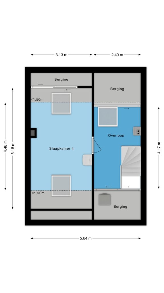 Tweede verdieping – Volwaardige verdieping met vierde slaapkamer