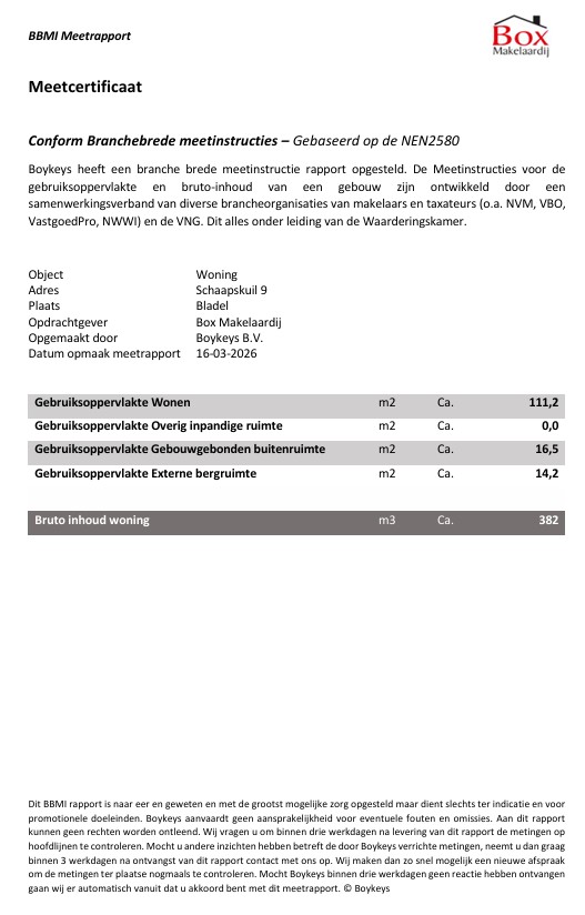 Welkom aan de Schaapskuil 9 in het gezellige Bladel, waar ruimte, comfort en een fijne woonomgeving perfect samenkomen. Deze verrassend ruime en degelijk gebouwde woning met een gebruiksoppervlakte van maar liefst 111 m² biedt je alles wat je zoekt als je royaal wilt wonen in een rustige, kindvriendelijke buurt. Dankzij de betonnen verdiepingsvloeren geniet je van een solide basis en een prettige geluidsisolatie, terwijl de praktische indeling, vier volwaardige slaapkamers en de vele bergruimtes zorgen voor optimaal wooncomfort voor het hele gezin. De ligging is bovendien ideaal, aan een brede groenstrook met volop speelruimte voor kinderen, dichtbij een groot speelveld en op korte fietsafstand van alle centrumvoorzieningen.