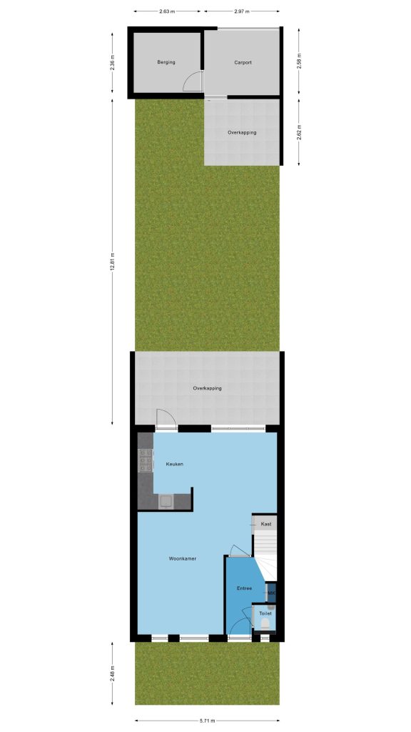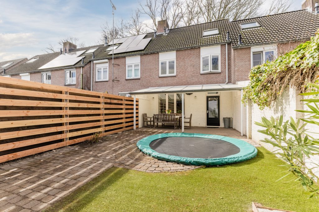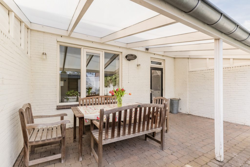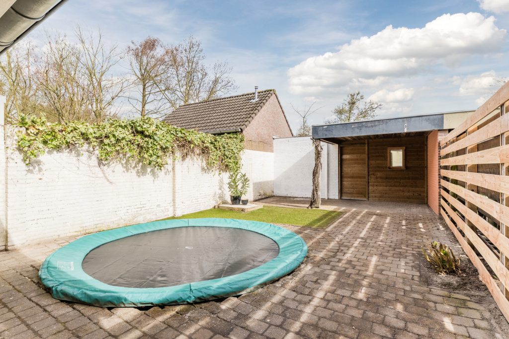 De achtertuin biedt je volop privacy en is royaal opgezet met een fijne terrasoverkapping, een gazon en sierbestrating waardoor je verschillende gezellige zitplekken kunt creëren. Achterin de tuin bevindt zich een praktische berging en een afsluitbare carport met stalen kanteldeur, zodat je altijd veilig op eigen terrein parkeert. De carport is momenteel verdeeld in twee compartimenten door een eenvoudig te verwijderen houten wand, wat je de flexibiliteit geeft om de ruimte naar wens te gebruiken voor bijvoorbeeld hobby’s, opslag of een werkplek.