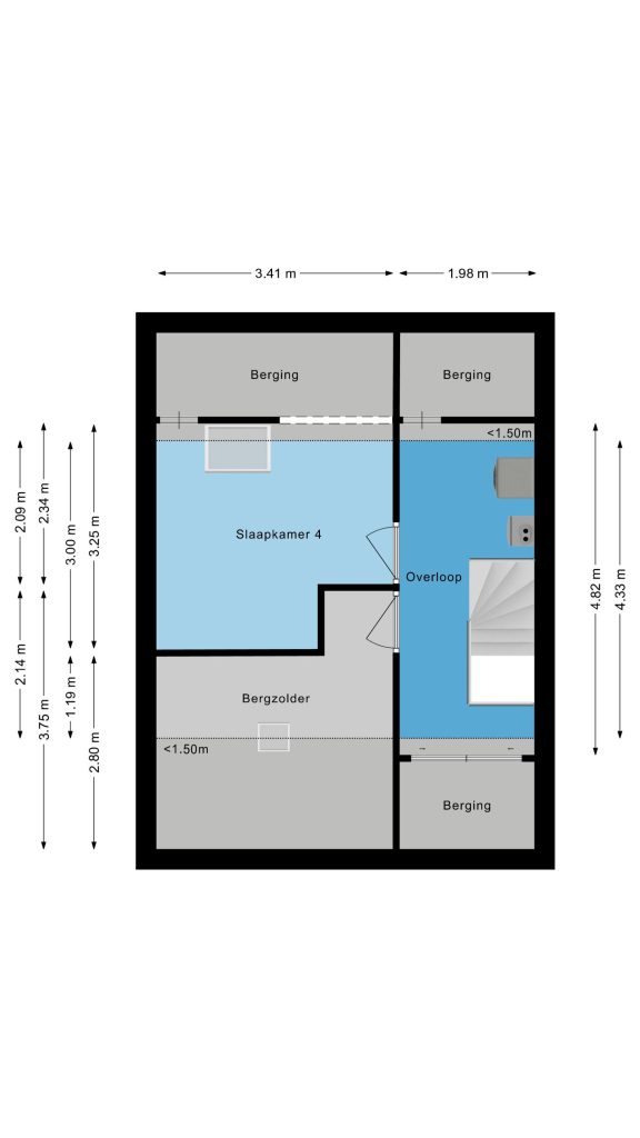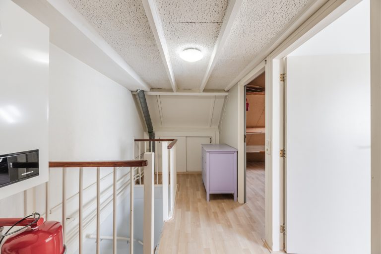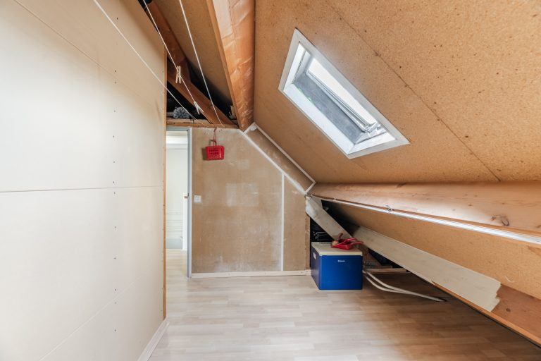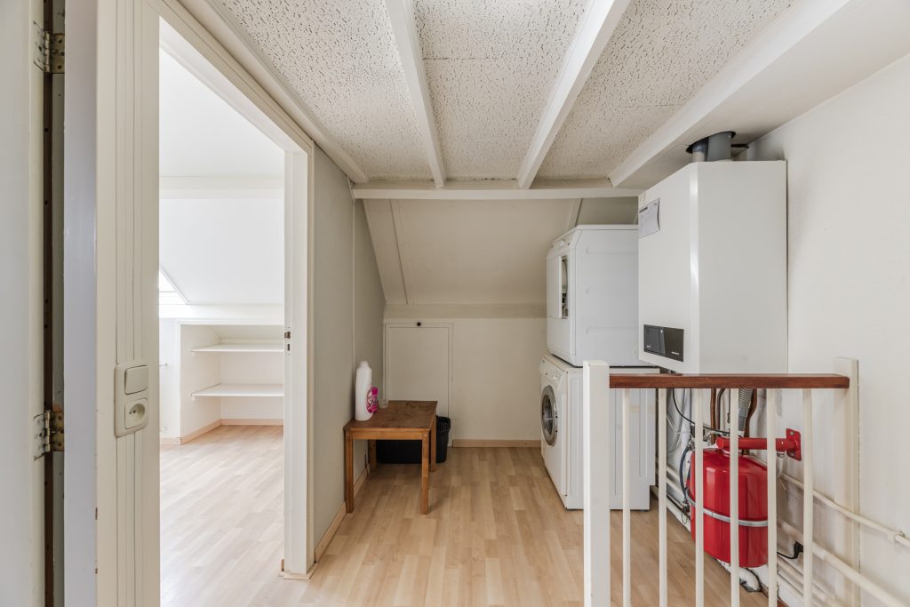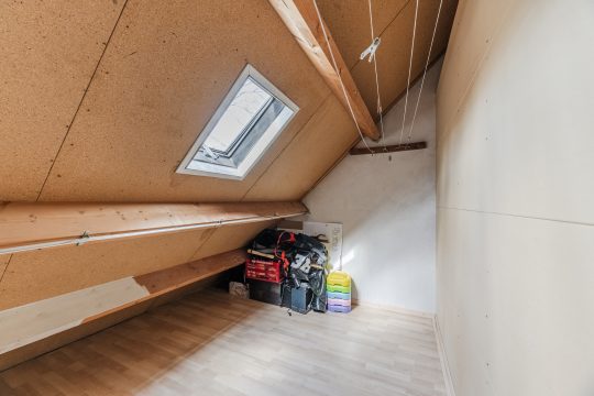 Daarnaast beschikt deze verdieping over een royale bergzolder met laminaatvloer en dakraam, met daarboven nog een praktische vliering, waardoor je meer dan voldoende plek hebt voor al je seizoensspullen en opslag.