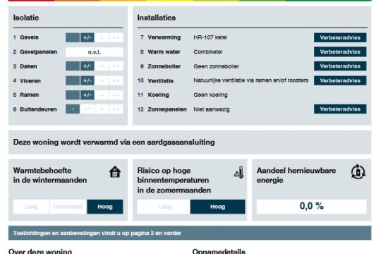 – de woning is voorzien van dak-, spouwmuur- en vloerisolatie.