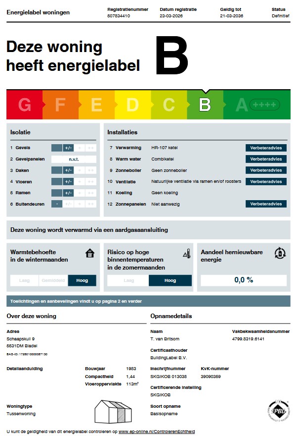 • Energielabel: B