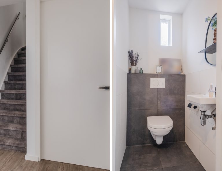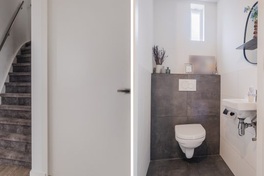 Zodra je binnenstapt, voel je het: dit huis is met zorg en oog voor detail vernieuwd. De entreehal, evenals de gehele begane grond, is voorzien van een houtlook PVC vloer met vloerverwarming (per ruimte regelbaar), strakke stucwerk wanden en strakke stucwerk plafonds. Ruimte voor een garderobe is er genoeg en tevens heb je toegang tot de volledig vernieuwde meterkast (10 groepen, fornuisgroep en glasvezel) en de moderne toiletruimte met hangcloset en fonteintje.