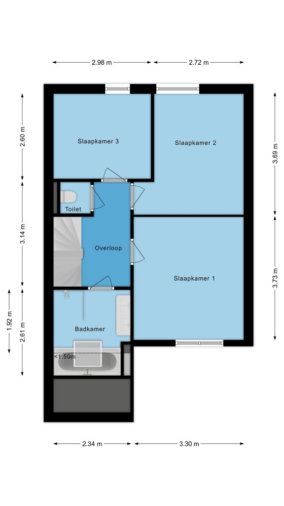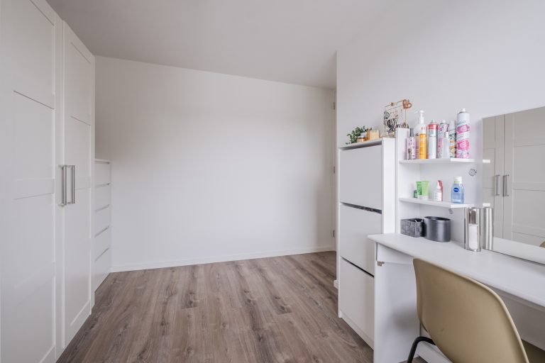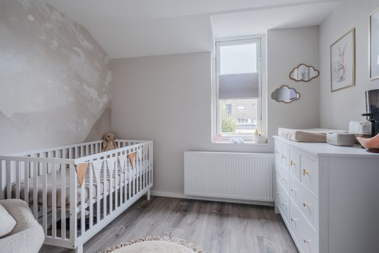 Op de eerste verdieping bevinden zich drie ruime slaapkamers, elk met een frisse, moderne uitstraling dankzij de nieuwe laminaat vloeren en strak gestucte wanden en plafonds. De master bedroom aan de voorzijde en de babykamer aan de achterzijde zijn voorzien van elektrische rolluiken (Solar). Het separaat toilet biedt extra comfort en privacy voor het hele gezin.