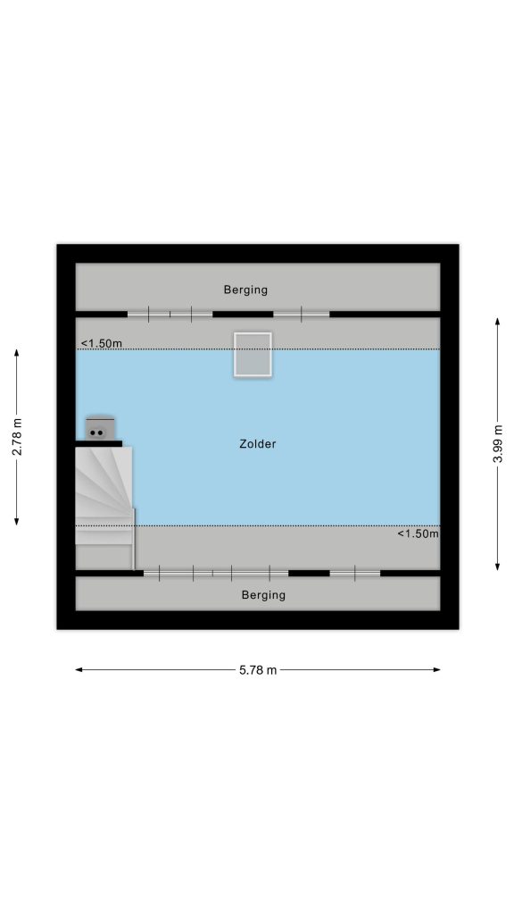 De verrassend ruime zolderverdieping is volledig afgewerkt en biedt plek aan de vierde slaapkamer. Deze ruimte kan ook uitstekend dienen als werkkamer, hobbyruimte of logeerkamer. De vele bergkasten onder de schuine kant en het Velux dakraam maken de ruimte ook nog een praktisch in gebruik. Tevens vind je hier de CV-installatie (Intergas, 2006).